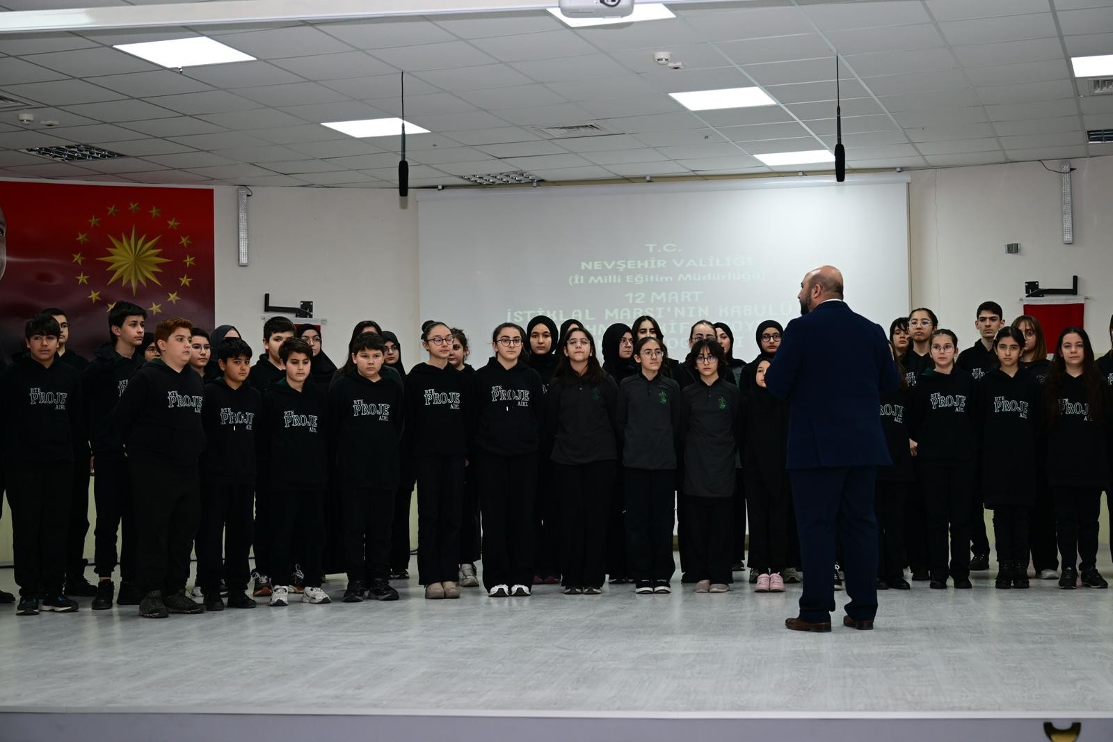 Nevşehir Valisi Ali Fidan, İl Protokol Üyeleri, İl Millî Eğitim Müdürü Yusuf Yazıcı, kurum yöneticileri, STK temsilcileri, öğretmenler ve öğrenciler; "İstiklal Marşı'nın Kabulü ve Mehmet Akif Ersoy'u Anma Günü" programına katıldı.