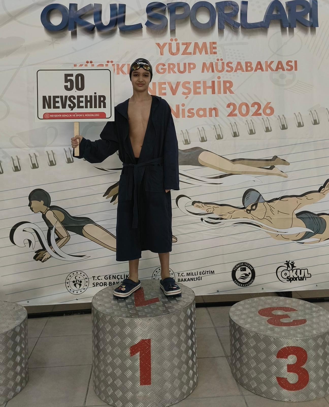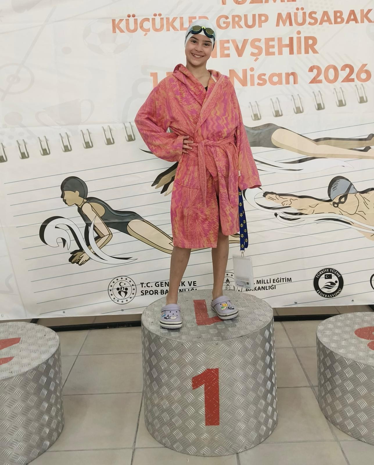 NEVŞEHİR(TRENDHABER)- Okul Sporları Federasyonu tarafından 11-12 Nisan 2026 tarihlerinde ilimizde düzenlenen ve 15 ilden 100’ü aşkın sporcunun katılımıyla gerçekleşen Küçük Kızlar ve Erkekler Yüzme Bölge Finallerinde, Altınyıldız İlköğretim Kurumu öğrencileri önemli dereceler elde etti.