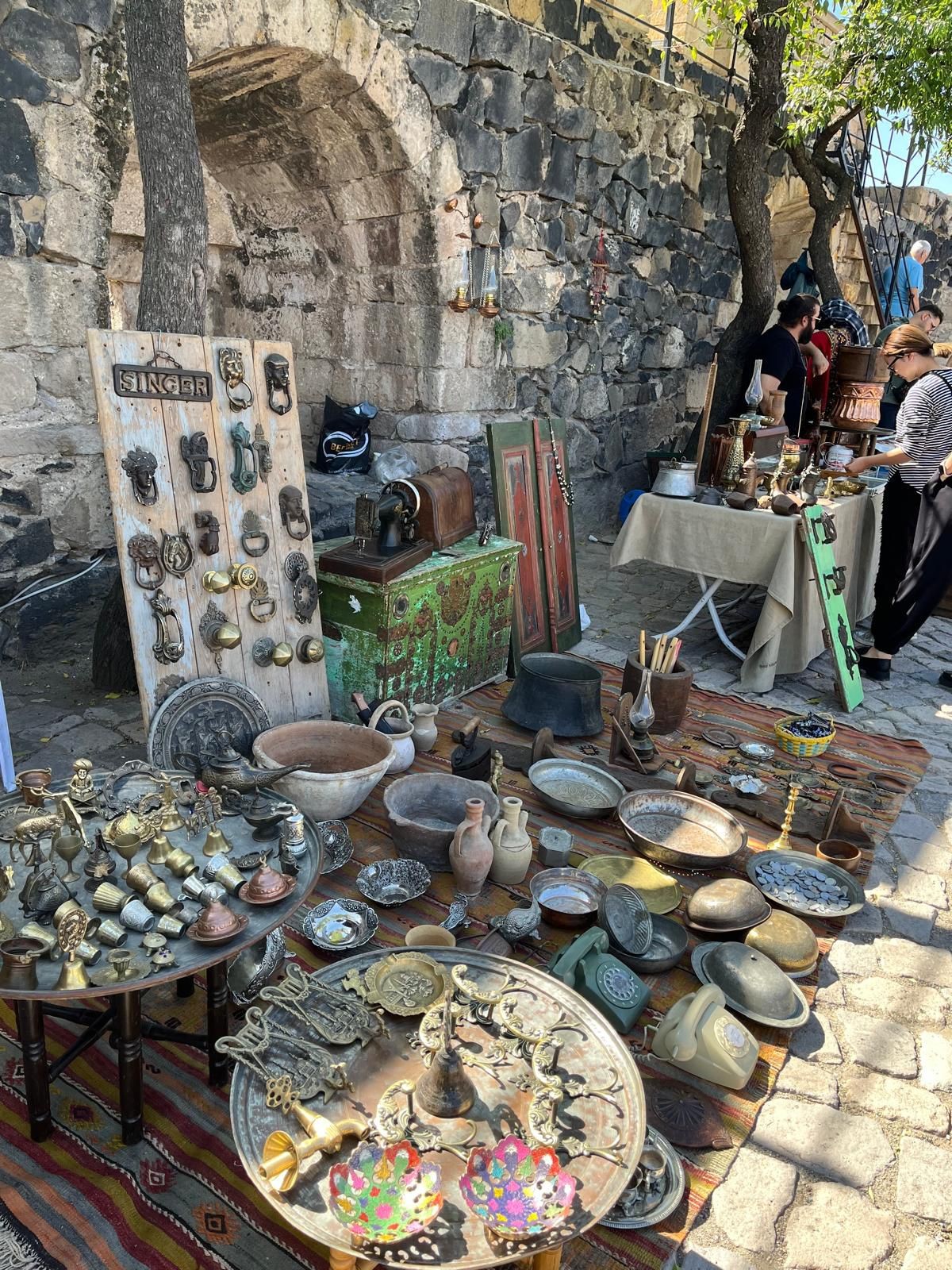 Antika pazarında; eski paralar, tarihi gramofonlar, pikaplar, plaklar, gaz lambaları, at arabası, kanı tekerlekleri, eski saatler, porselenler gibi antika değeri taşıyan birçok eşya vatandaşların beğenisine sunuluyor.