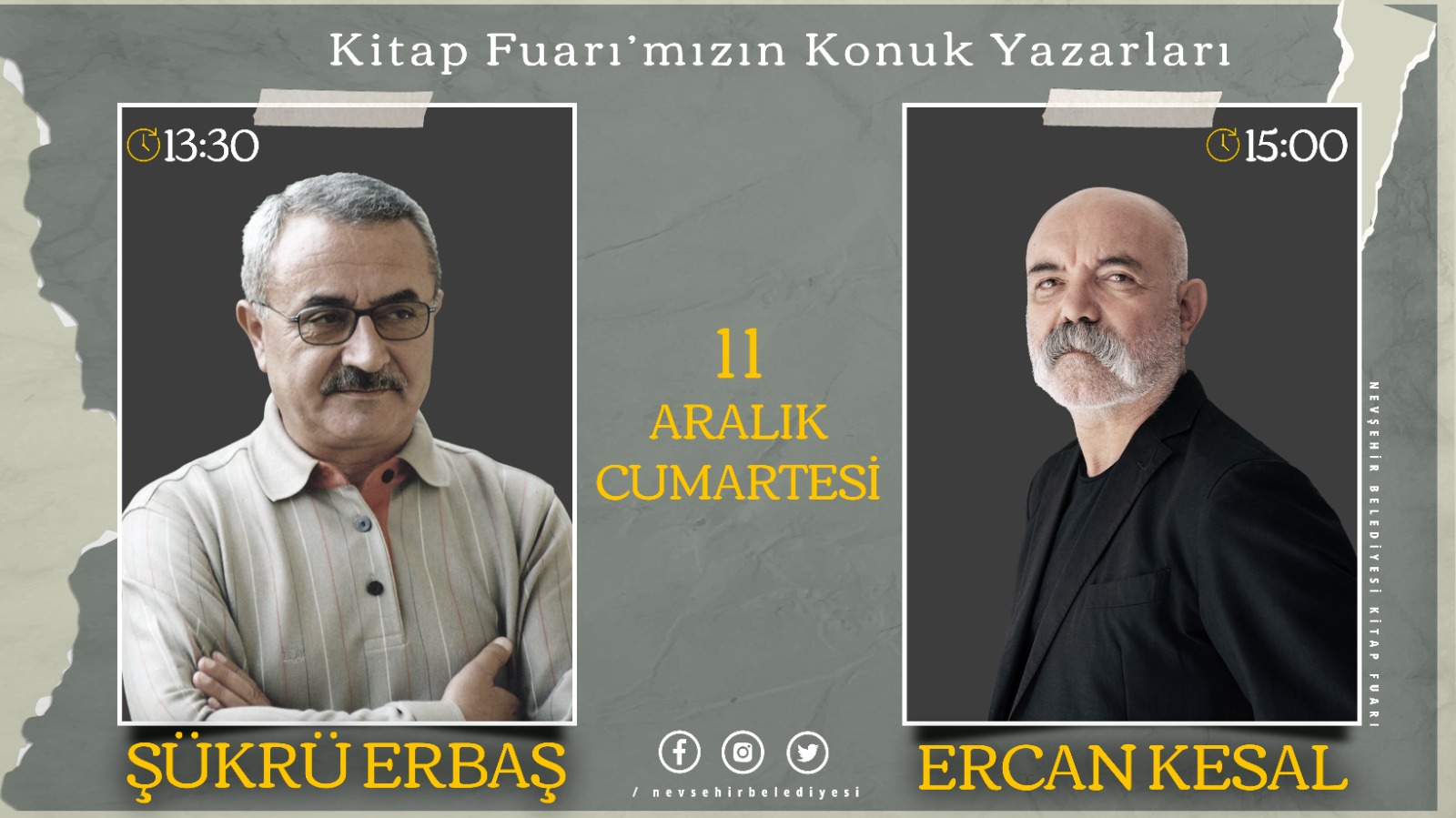 ERCAN KESAL VE ŞÜKRÜ ERBAŞ, 11 ARALIK CUMARTESİ NEVŞEHİR BELEDİYESİ KİTAP FUARI’NDA
