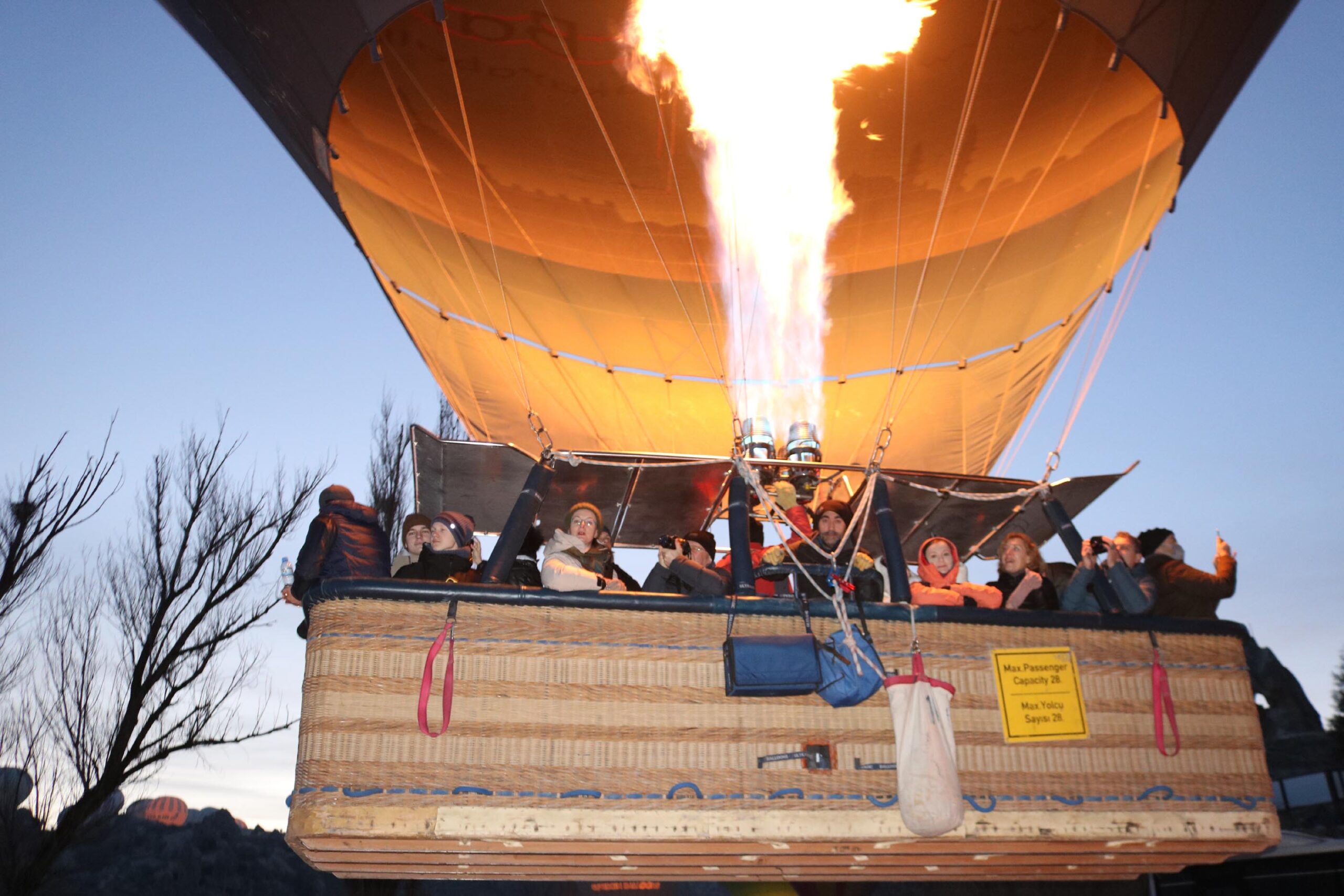 KAPADOKYA’DA TURİSTLER, YENİ YILIN İLK GÜNÜNÜ BALONDA KARŞILADILAR