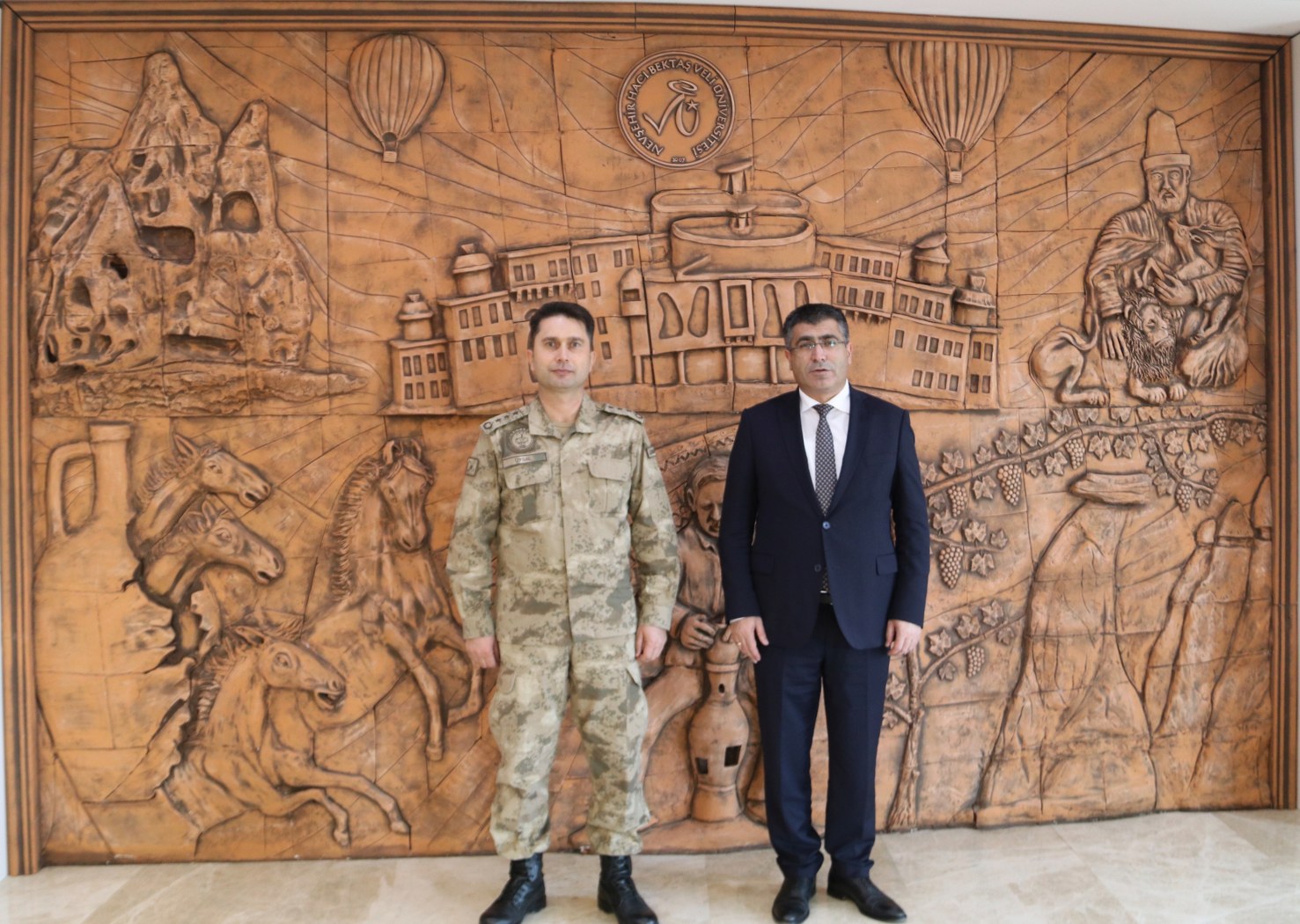 NEVŞEHİR(TRENDHABER)- Nevşehir Jandarma At ve Köpek Eğitim Merkezi (JAKEM) Komutanı Jandarma Albay İlyas Uysal, Nevşehir Hacı Bektaş Veli Üniversitesi (NEVÜ) Rektörü Prof. Dr. Semih Aktekin’e iade-i z...