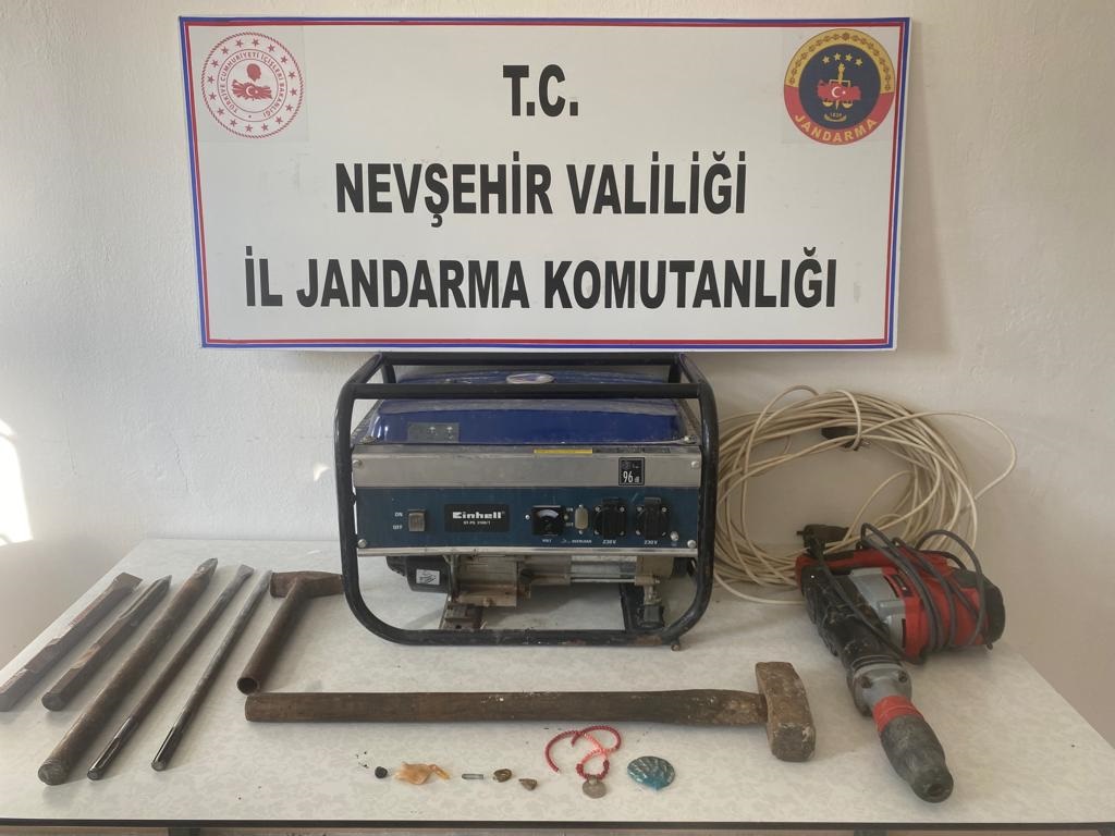 NEVŞEHİR(TRENDHABER)- Nevşehir’in Gülşehir ilçesinde kaçak kazı yapan 3 kişi, kazı yaptıkları araç ve gereç lerin yanı sıra, kazıdan çıkardıkları çeşitli tarihi eserlerle birlikte suçüstü yakalandı. A...