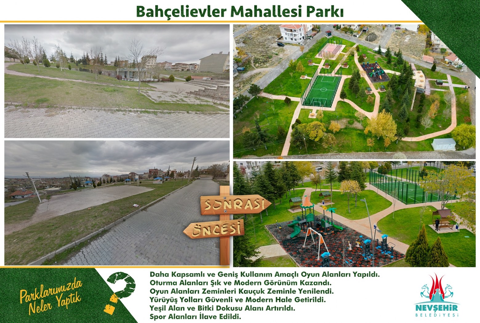 NEVŞEHİR(TRENDHABER)- Nevşehir Belediyesi tarafından yenilenen Bahçelievler Parkı mahalle sakinlerinden tam not aldı. Baştan aşağıya yenilenen park içerisine gençler için basketbol ve futbol sahası ya...