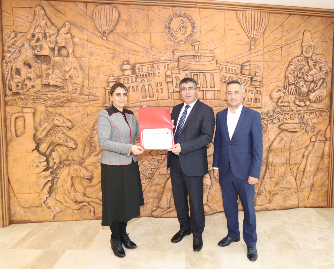 NEVŞEHİR(TRENDHABER)- Nevşehir Halil İncekara Bilim ve Sanat Merkezi Müdürü A. Emre Ergin beraberinde Sanat Merkezi öğretmeni M. Ela Yalçın ile birlikte Nevşehir Hacı Bektaş Veli Üniversitesi (NEVÜ) R...