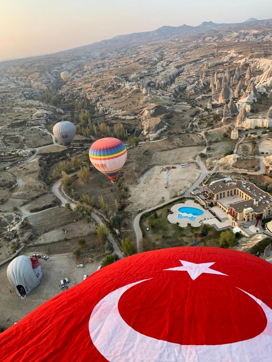 NEVŞEHİR(TRENDHABER)- Cumhuriyet Bayramı nedeniyle Türkiye’nin en önemli turizm merkezlerinden biri olan Kapadokya bölgesinde sıcak hava balonları, bu sabahki uçuşlarına sepetlerine Türk Bayrakları ...