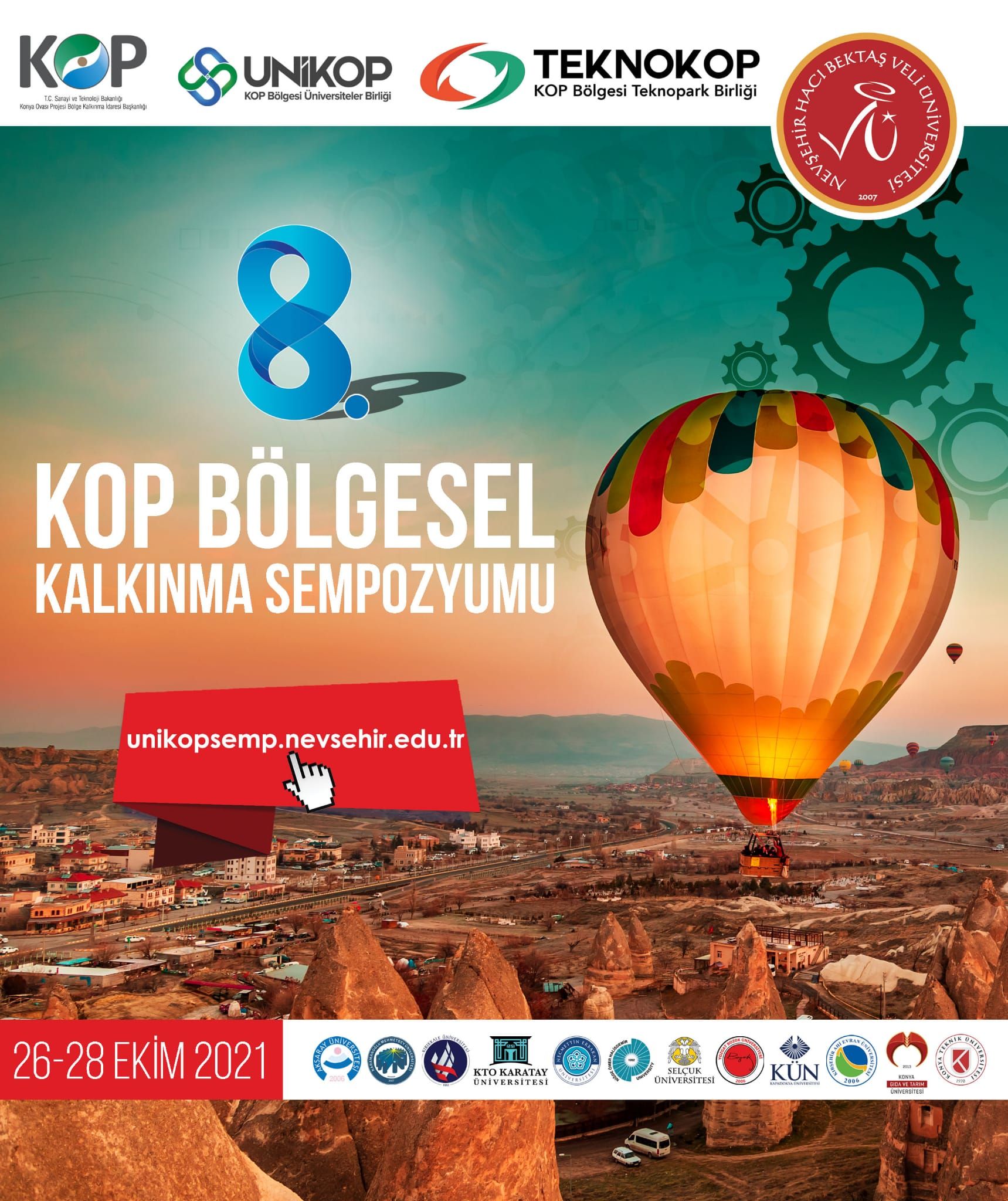 NEVŞEHİR(TRENDHABER)- KOP İdaresi ile KOP Bölgesi Üniversiteler Birliği (UNİKOP) iş birliğiyle düzenlenen ‘8. Uluslararası KOP Bölgesel Kalkınma Sempozyumu’ 26-28 Ekim 2021 tarihleri arasında Hacı Bek...