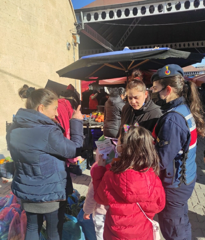 JANDARMA VE EMNİYET EKİPLERİ, ÜRGÜP PAZARYERİNDE KADINLARA KADES’İ TANITTI