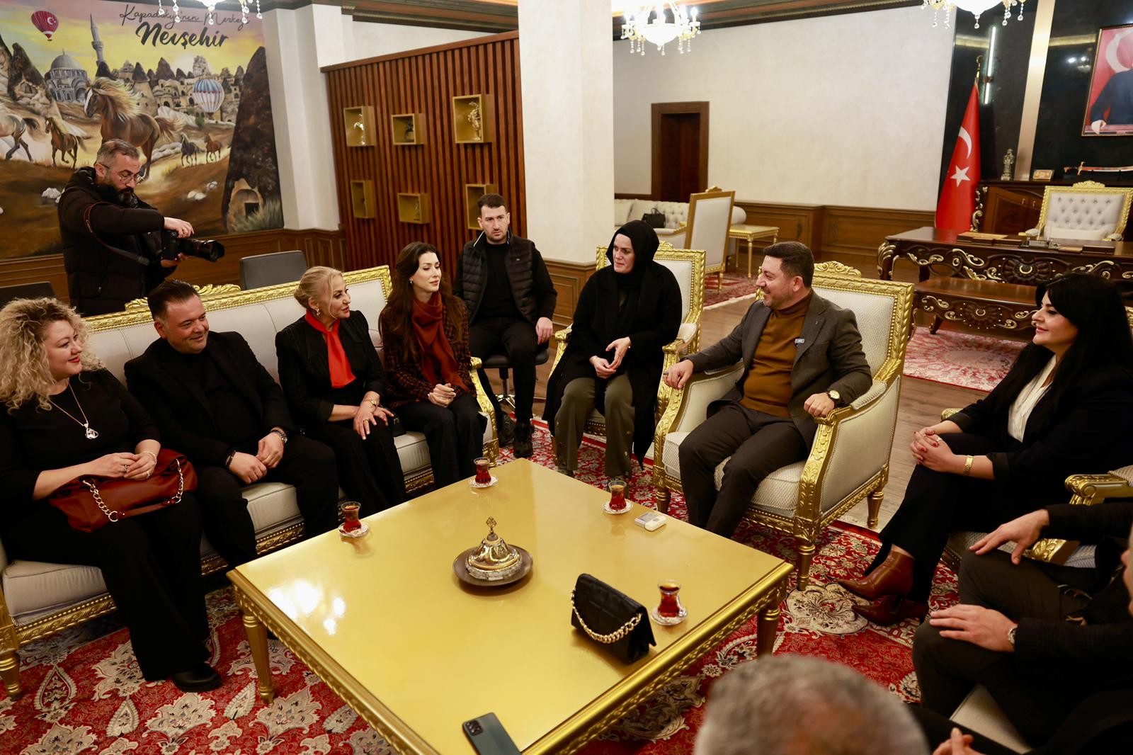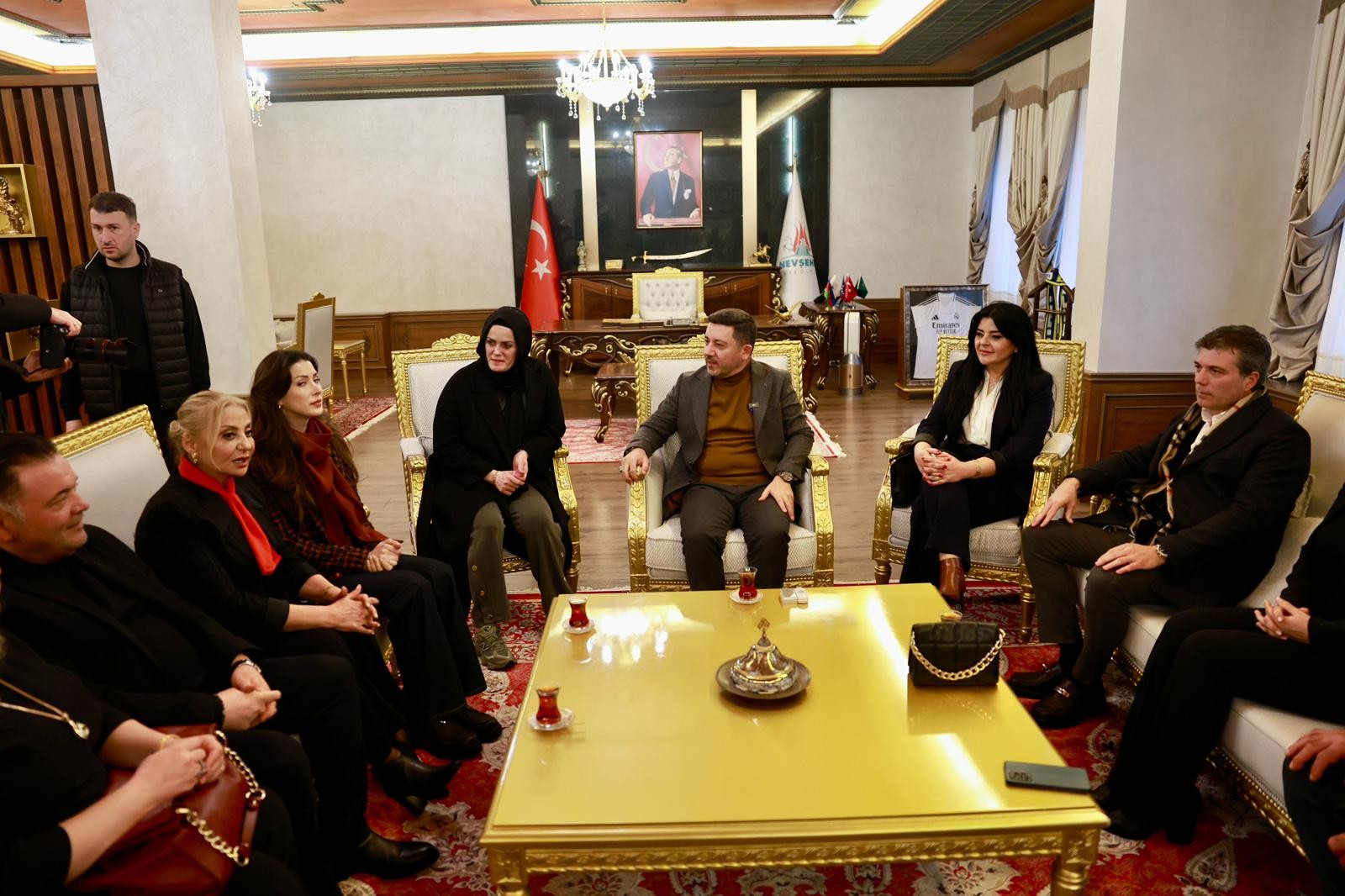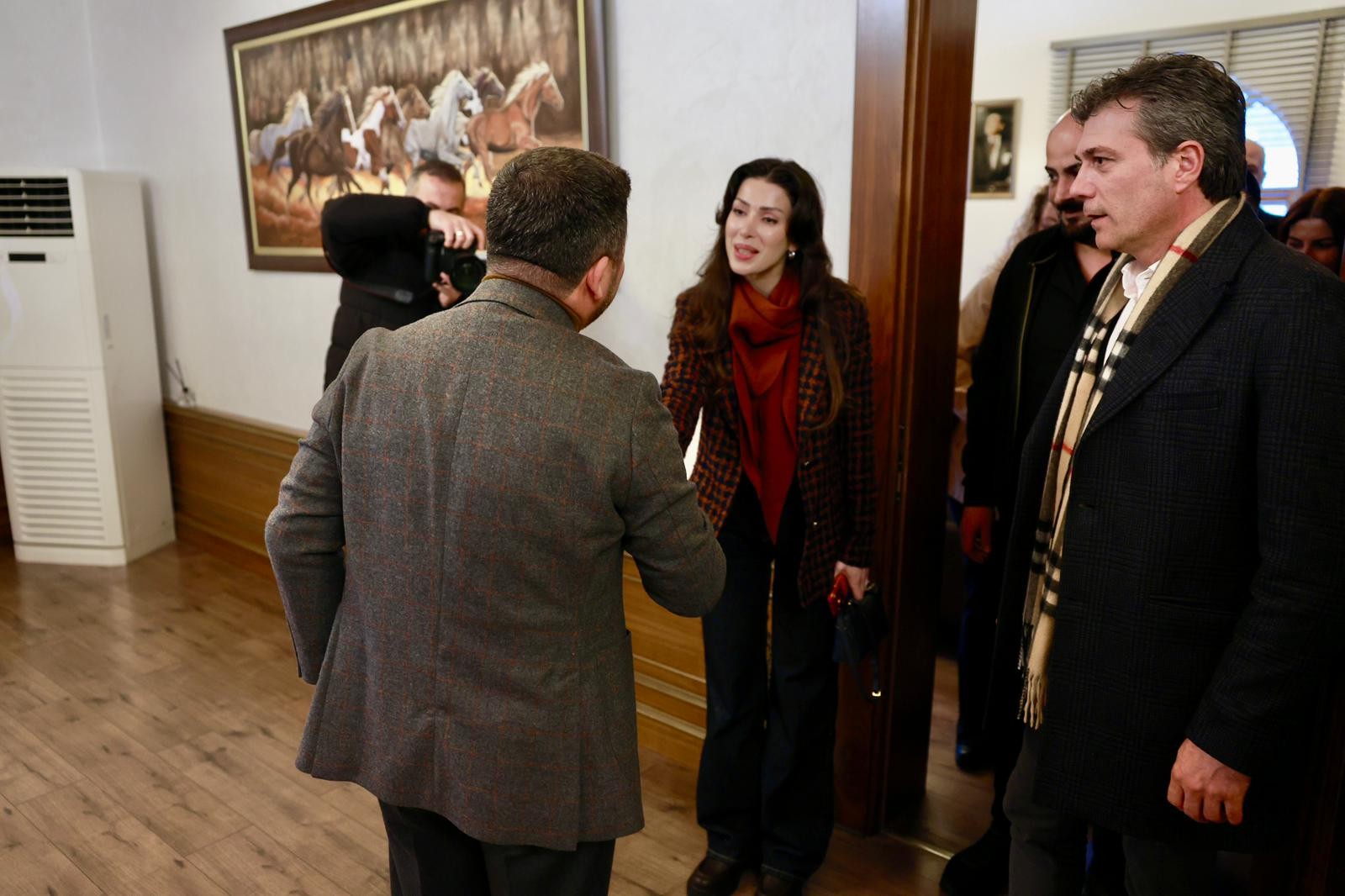NEVŞEHİR(TRENDHABER)- Nevşehirli merhum Abdullah Çatlı’nın hayatını konu alan “ÇATLI” filminin oyuncuları ve Çatlı Ailesinin üyeleri Nevşehir Belediye Başkanı Rasim Arı’yı makamında ziyaret etti.
