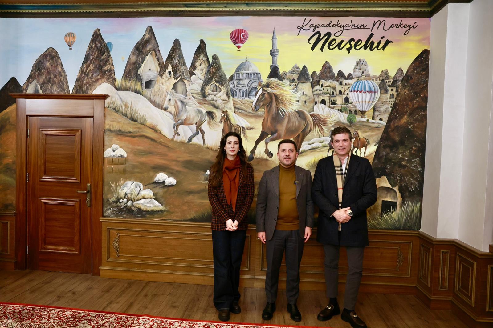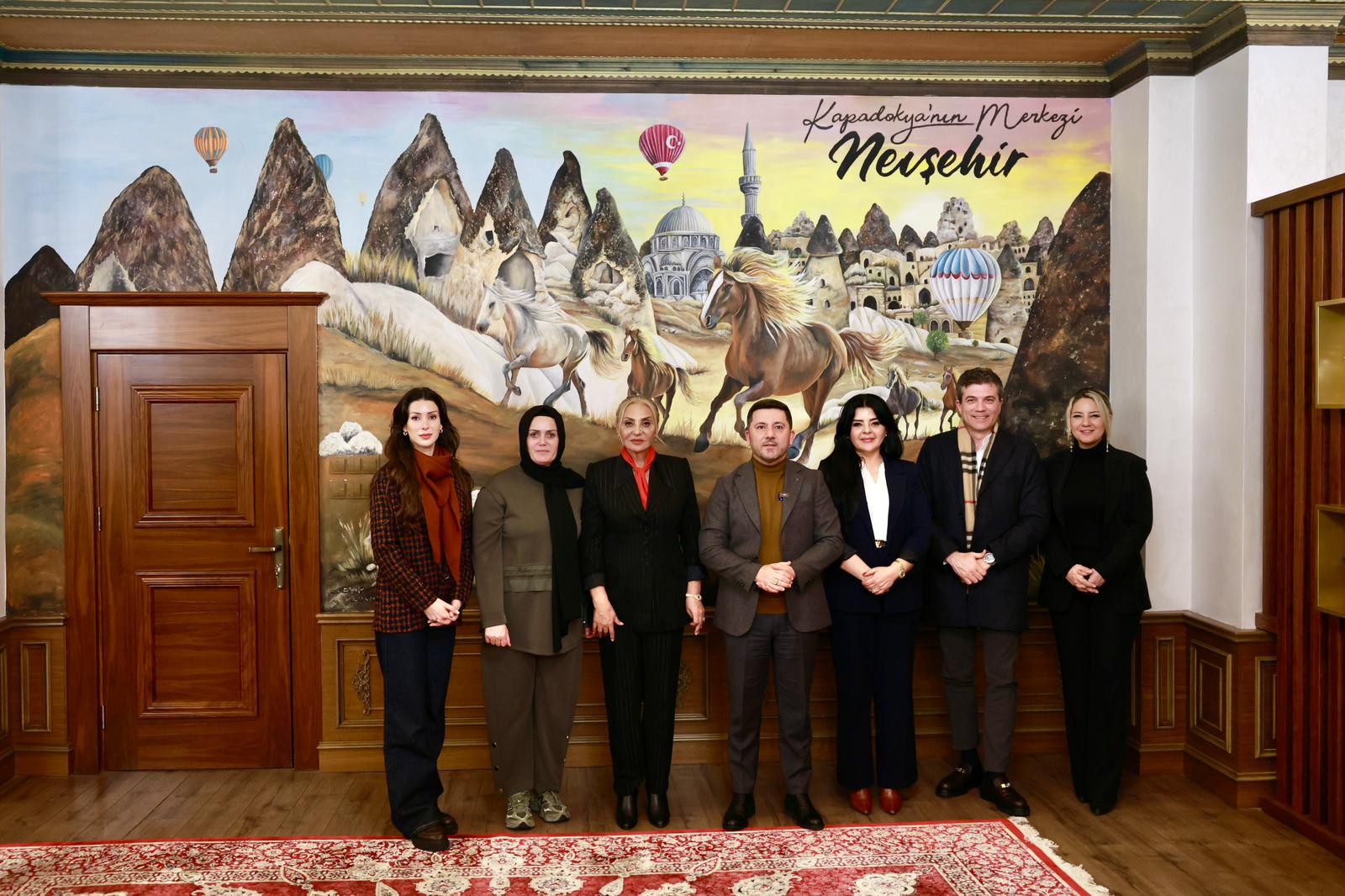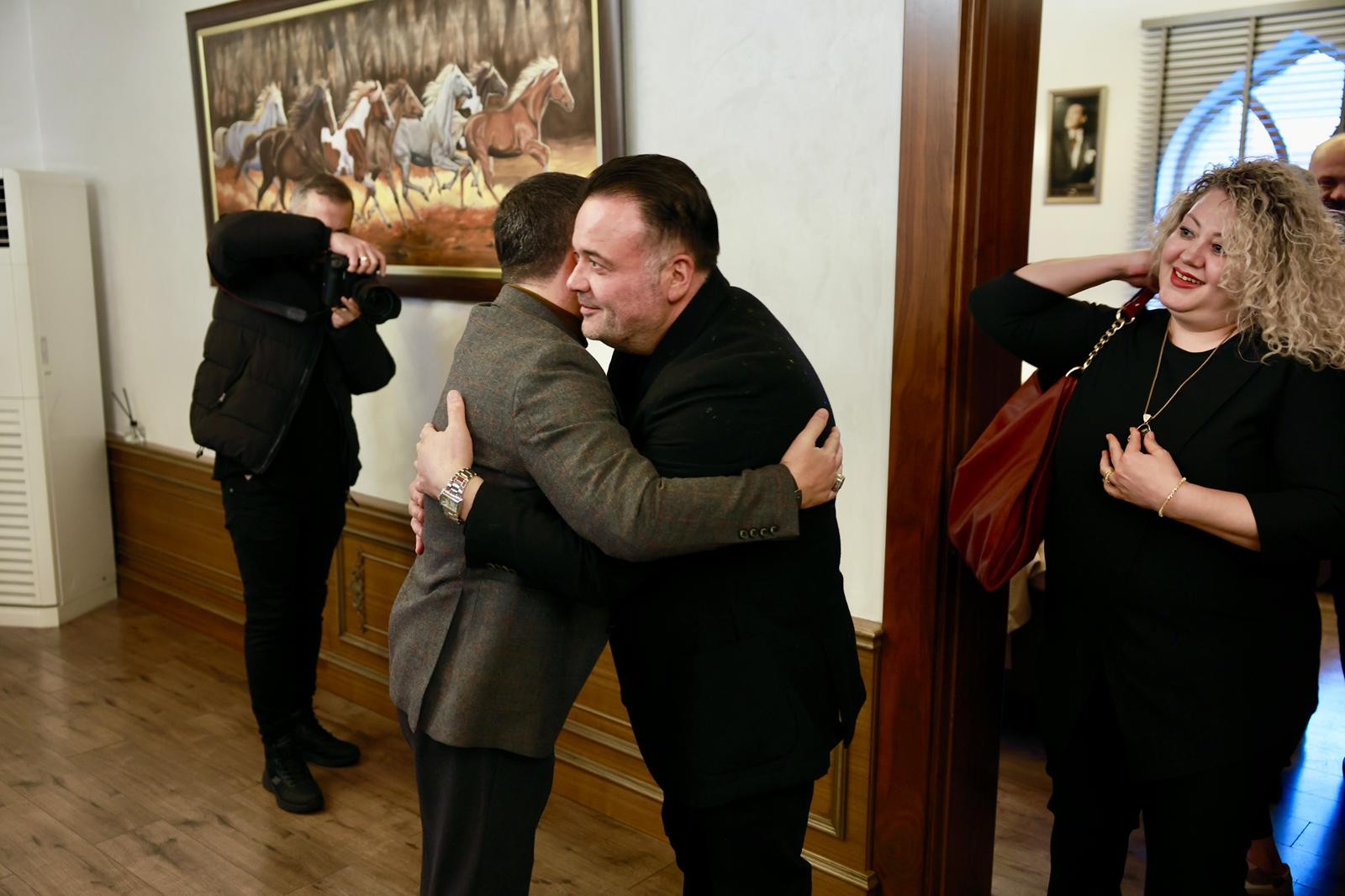 NEVŞEHİR(TRENDHABER)- Nevşehirli merhum Abdullah Çatlı’nın hayatını konu alan “ÇATLI” filminin oyuncuları ve Çatlı Ailesinin üyeleri Nevşehir Belediye Başkanı Rasim Arı’yı makamında ziyaret etti.