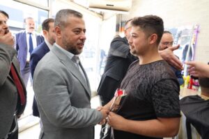 Tören sonrası Vali Fidan ve beraberindeki protokol üyeleri esnaf ve sanatkarları ziyaret ederek karanfil takdim etti.