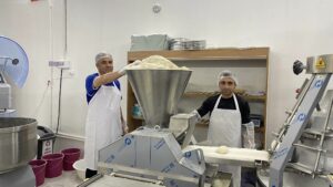 NEVŞEHİR(TRENDHABER)- Nevşehirlilerin HALK EKMEK hayalini 20 yıllık bir aradan sonra gerçeğe dönüştüren Yazıhüyük Belediye Başkanı Cengiz Çavdar, hizmete kazandırdığı Yazıhüyük Belediyesi Halk Ekmek Fabrikasında önlüğü kaptığı gibi HALK EKMEK ustalarına çalışmalarında yardım etti.
