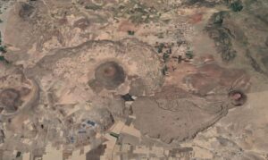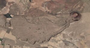 Google Earth programının 3D görüntülerinden oluşturulan bu fotoğraflar, Erdaş Dağı ile Aksaray’daki Göllü dağ arasında kalan alanı kapsıyor. Kapadokya bölgesi jeolojisinin oluşumunda Erciyes ve Hasan Dağı volkanları gibi emeği geçmiş çok sayıda küçük volkan konisine ev sahipliği yapıyor gerçekte.