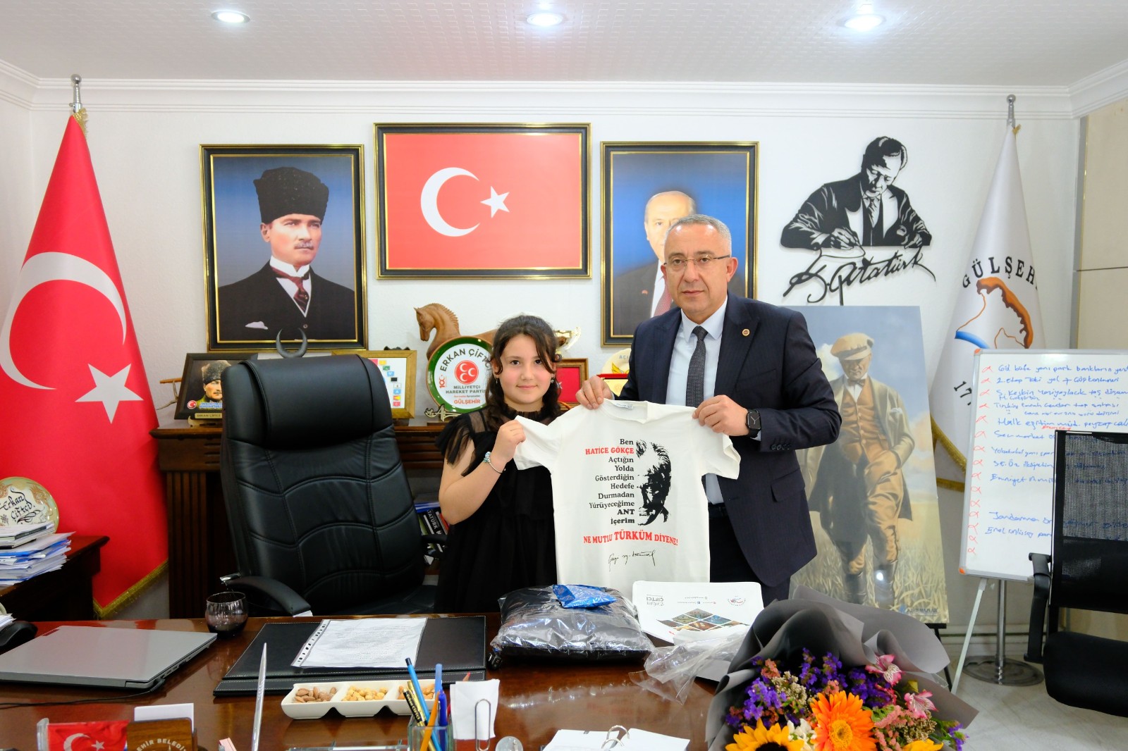 NEVŞEHİR(TRENDHABER)- 23 Nisan Ulusal Egemenlik ve Çocuk Bayramı etkinlikleri kapsamında, Gülşehir Belediye Başkanı Erkan Çiftci, başkanlık koltuğunu Atatürk İlkokulu öğrencilerinden Hatice Gökçe Doğan’a devretti.