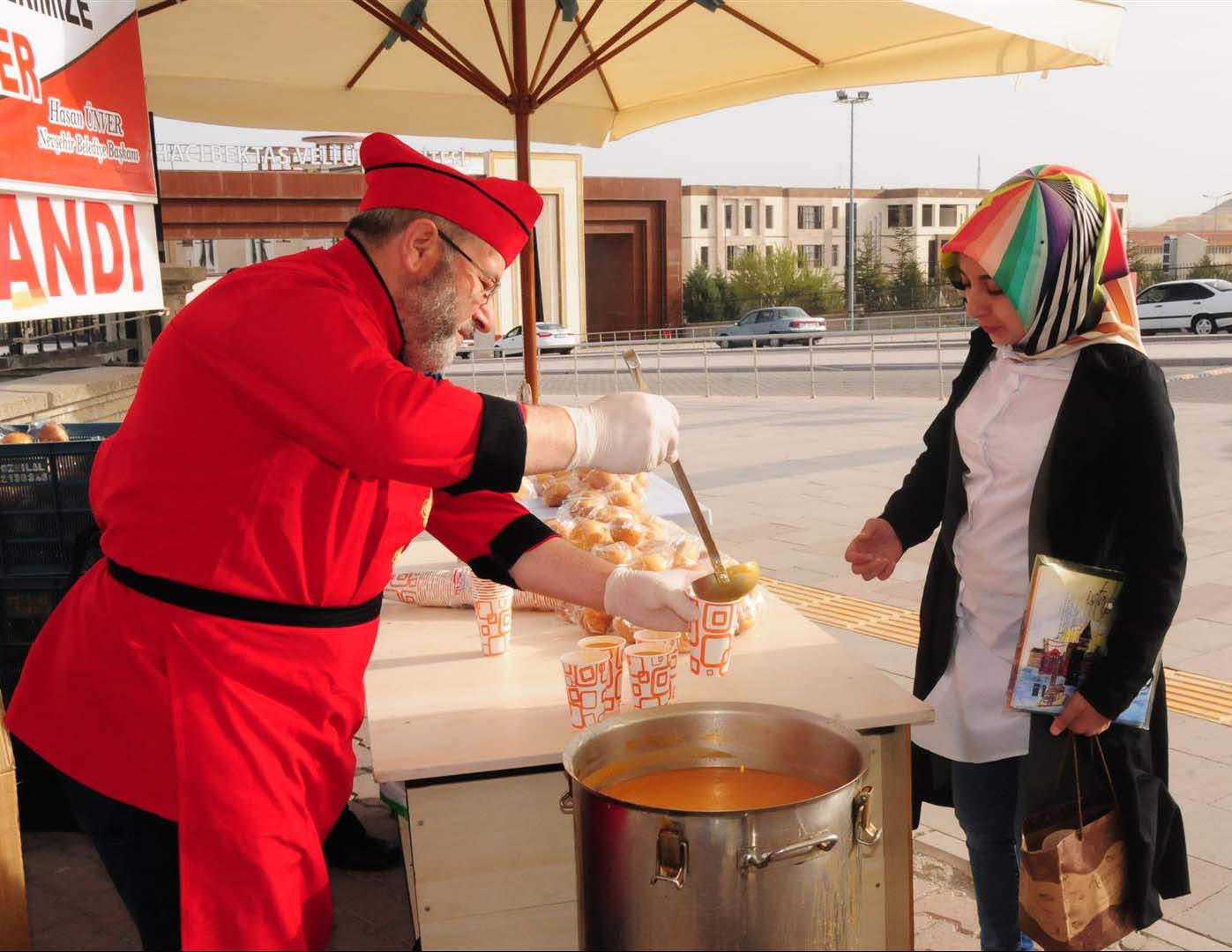 Nevşehir Belediyesi ekipleri, Nevşehir Hacı Bektaş Veli Üniversitesi’nde öğrenim gören öğrencilerin bahar dönemi ara sınavların yapılacağı 15 gün boyunca ,   sabah saatlerinden itibaren çorba dağıtımını yapacak.