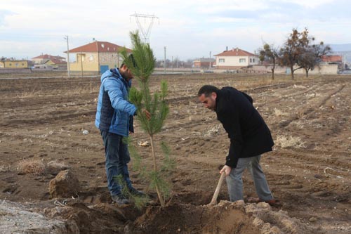 Nevşeirin Kaymaklı beldesinde yeni açılan cadde ve sokaklara ağaç dikimi yapıldı.