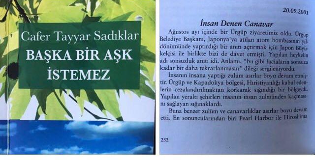 Ürgüp eski Belediye Başkanı Bekir Ödemiş Başkanlığı döneminde yaptırmış olduğu insanlık anıtı Türk Japon vakfı Başkanı Tayyar Sadıkların  başka bir aşk istemez    adlı kitabında yer aldı.