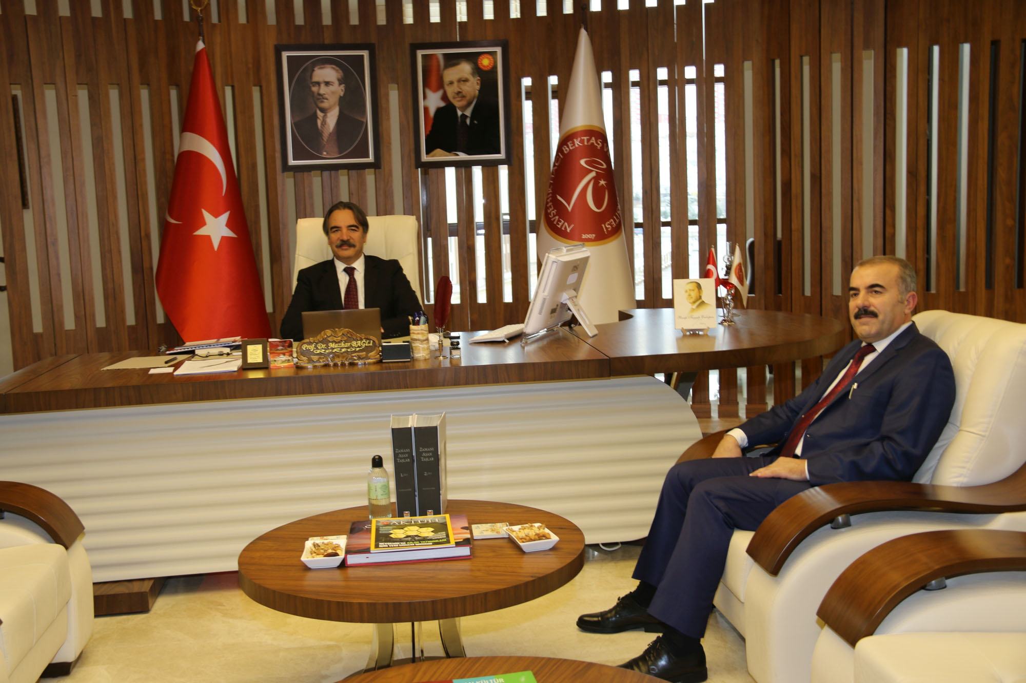 Nevşehir İl Milli Eğitim Müdürü Murat Demir, Nevşehir Hacı Bektaş Veli Üniversitesi Rektörü Prof. Dr. Mazhar Bağlı’yı makamında ziyaret etti.  İl Müdürü Demir ziyaretlerinde, Nevşehir Hacı Bektaş Veli Üniversitesi ile ortaklaşa yürütülecek eğitimde iş birliği hakkında Rektör Bağlı’ya bilgi verdi.