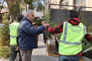Kent merkezinde vatandaşlara dikmeleri için yapılan fidan dağıtımı sonrası 15 Temmuz Mahallesi 102. Sokak’ta bulunan yeşil alana Ahmet Faik Çakıllı Özel İnsanlar Eğitim Merkezi Özel İnsanlar için oluşturulan Hatıra Ormanı’na özel vatandaşlarımız isimlerinin yazdığı fidanları toprakla buluşturdular.