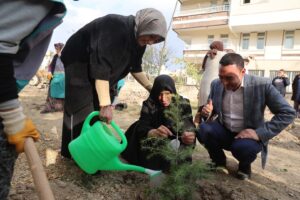 Kent merkezinde vatandaşlara dikmeleri için yapılan fidan dağıtımı sonrası 15 Temmuz Mahallesi 102. Sokak’ta bulunan yeşil alana Ahmet Faik Çakıllı Özel İnsanlar Eğitim Merkezi Özel İnsanlar için oluşturulan Hatıra Ormanı’na özel vatandaşlarımız isimlerinin yazdığı fidanları toprakla buluşturdular.
