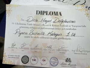 NEVŞEHİR(TRENDHABER)- Yüzyılın felaketi Kahramanmaraş merkezli 6 Şubat depreminde Adıyaman’da annesi ve kardeşini toprağa veren 16 yaşındaki Dicle Hayat Dağdeviren,  Nevşehir’in Ürgüp ilçesinde düzenlenen 10. Uluslararası Little Mozart’s Piyano& Keman Festivali ve Yarışmasında  Piyano Bestecilik Kategorisinde 1. oldu.