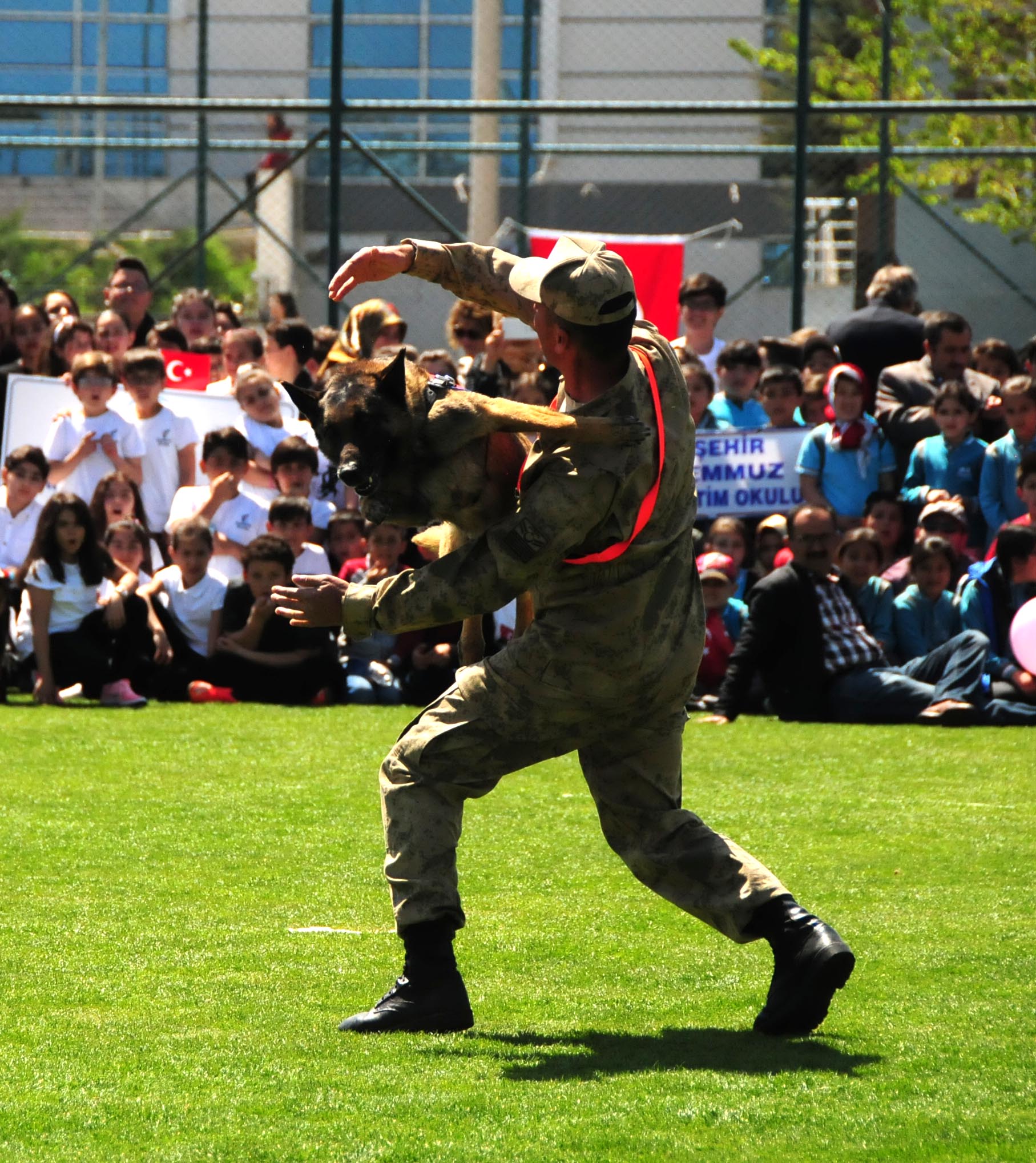Müzik öğretmeni Nuh Erkul yönetiminde Atatürk Çocukları ve Çocuk Şarkılarının söylenmesinin Jandarma Genel Komutanlığına bağlı Jandarma At ve Köpek Eğitim Merkezi Komutanlığı (JAKEM) ‘de, devriye, bomba ve uyuşturucu arama, narkotik ve tütün aramalarında eğitimli hale getirilen köpeklerin gösterisi ilgiyle izlendi.