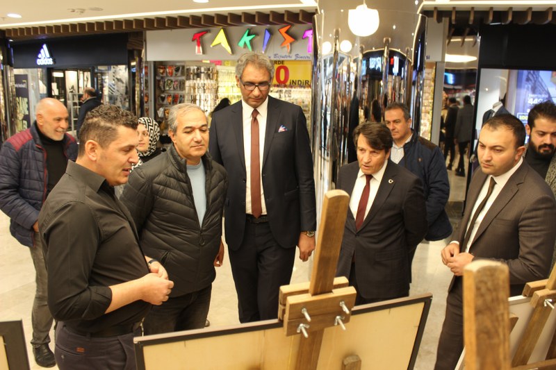 NEVŞEHİR(TRENDHABER)- Nevşehir Lisesi Görsel Sanatlar  Öğretmeni Celalettin Eğilmez’in karma teknikle hazırladığı Türk Eğitim Sen Nevşehir şubesi tarafından organize edilen resim sergisi Nissara AVM’nin ikinci katında açıldı. Serginin açılışına Nevşehir MHP MYK üyesi Mehmet Varol, Ülkü Ocakları Başkanı Ali Türker, Türkiye Kamu-Sen Nevşehir İl Temsilcisi Turgay Çetin, Türk Eğitim Sen Nevşehir Şube Başkanı Tayfur Urgenç, Başkan Yardımcısı Önder Doğan, Türk Eğitim Sen Kadın Komisyonu Bşk. Yrd. Aysel Doğan, kurum yöneticileri, eğitim çalışanları ve öğrenciler katıldı. Açılıştan bir süre sonra resim sergisini MHP İl Başkanı İlhan Kaya gezerek çalışma hakkında bilgi aldı.