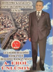 Hatta Erol Ünlüsoy’un Başkanlık sürecini İktisat ya da Kamu Yönetimi, Siyaset Bilimi eğitimi alan gençlerimizin, tez çalışması için iyi bir araştırma konusu olacağına inanıyorum. Erol Başkan, Nevşehir’in Gülşehir ilçesinde dört dönem Belediye Başkanlığı görevini yürüttüğü sürede. Türkiye’de hiçbir beldede hiçbir kentte başka bir örneği daha olmayacak başarılara imza attığını, ilçeye kazandırdığı hizmet ve yaptığı iş/yatırımlarda bunu görüyor;