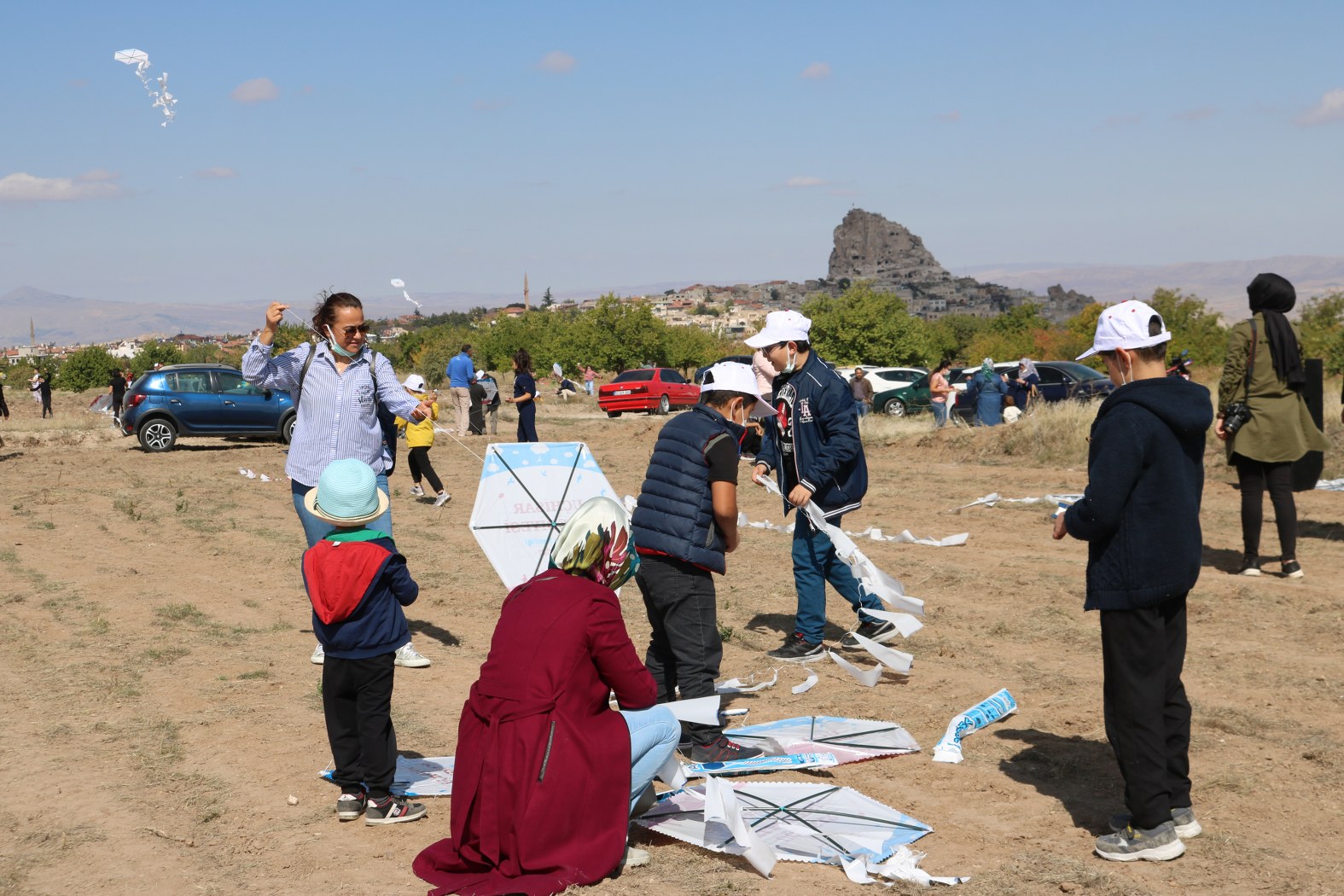 Uçhisar Belediyesi tarafından hazırlanan uçurtmaları aileleriyle birlikte uçurtmaya hazır hale getiren çocuklar, havanın da uçurtmak uçurmak için elverişli olmasından da yararlanıp dakikalarca havada kalan uçurtmaları ile neşe dolu anlar yaşadılar.