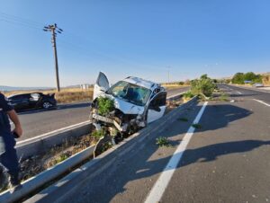 NEVŞEHİR(TRENDHABER)- Ürgüp-Ortahisar karayolu üzerinde , kullandığı hafif ticari aracı ile seyir ederken, sabah güneşinin gözünü alması nedeniyle direksiyon kontrolünü kaybederek orta refüje çarpan genci, açılan hava yastığı kurtardı.