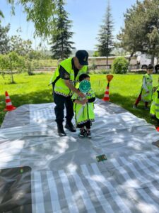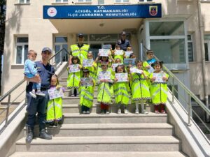 NEVŞEHİR(TRENDHABER)- Acıgöl İlçe Jandarma Komutanlığı ekipleri, Nevşehir İl Jandarma Komutanlığı Trafik Şube Müdürlüğü koordinesinde Nevşehir’in Acıgöl ilçesindeki Nene Hatun Anaokulu öğrencilerine trafik eğitimi verdi.