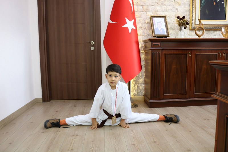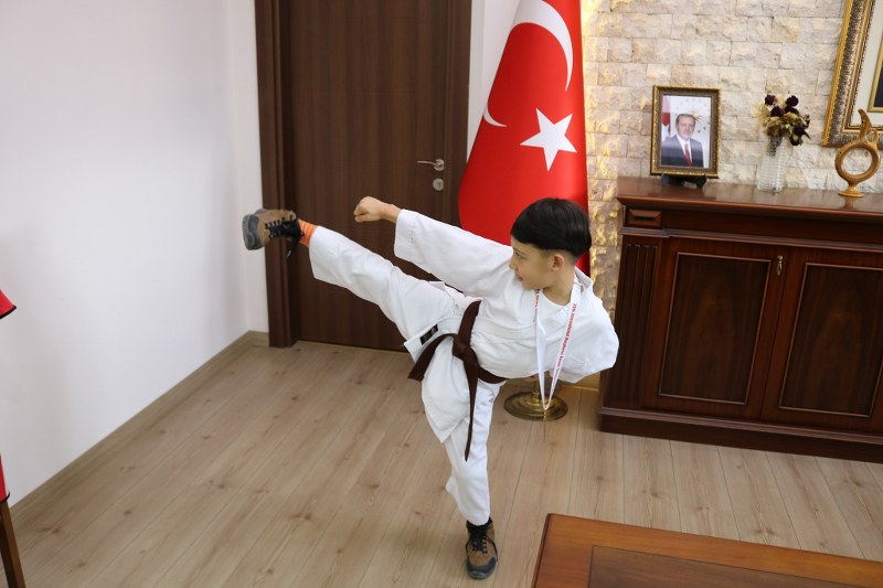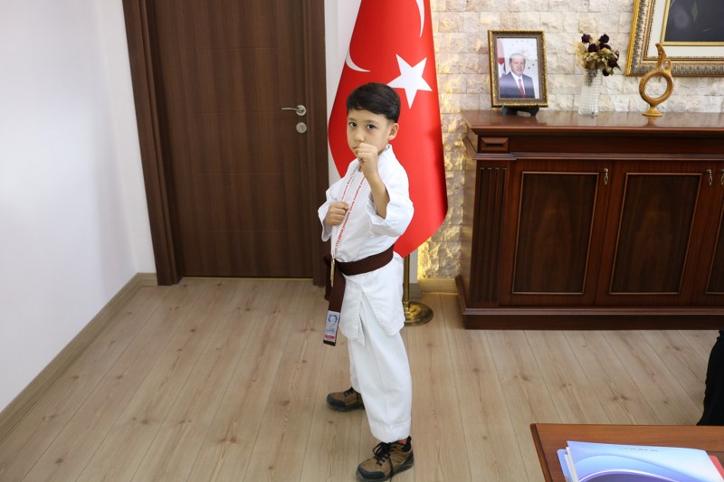 Nevşehir(TRENDHABER) 3-05 Ocak 2020 tarihleri arasında İstanbul’da   23 ülkeden  115 kulüp ve  1391 sporcunun katıldığı 33.ncü Uluslar Arası Boğaz İçi Karate Turnuvasında kata branşında rakiplerini yenerek şampiyon olan minik karateci Mustafa Çınar Sığar’ı makamında kabul ederek ,başarısından dolayı tebrik etti.