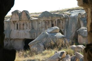 Haaa biliyoruz, belki bu önerimize ‘görüntüyü bozar’ gibi bir değer ortaya koyabilirsiniz. Ahhh ne güzel tarihsel değerleri severmişiniz diyeceğimiz geliyor amma yağmur ve kar suları ile UÇAN VEYA UÇMA TEHLİKESİ İLE YÜZDE YÜZ KARŞI KARŞIYA KALAN BİR YAPI ACABA GÖRÜNTÜYÜ BOZMAZ MI ? Bırakın görüntüyü bozmayı dev kaya kütlelerinin bir bölümü sağ,bir bölümü soğa savrulmuş bir tüf kaya kütleleri çok mu hoşunuza gider belki 3 yıl, belki 10 yıl sonra.