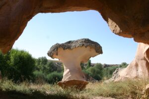Bölgede bulunan MANTAR KAYA görünümlü peribacaları, üzeri kesinlikle yağmur ve kar yağışı nedeniyle kaya katmanına suyu almayacak bir şekilde korunaklı hale getirilmelidir. Bu belki bir fanus olabilir, bu fanus gibi korunaklı yapının sağı ,solu,önü ve arkasından açılacak büyük delikler yardımıyla MANTAR KAYA’nın ana katmanı olan tüf yapısının hava sirkülasyonu sağlanabilir. Yağan yağmur ve kar ile birlikte kaya katmanları ufalanmakta ve sağlamlık noktasında hasar oluşmaktadır. Buna bir de ziyaretçilerin ziyaretlerine tepe noktalarına çıkma yönündeki gayretleri ortaya konulduğunda KORUMANIN hangi temeller içerisinde KORUNAKSIZLIK olarak algılandığı da gözler önüne serilmektedir. Ama siz bu yapıyı bir FANUS gibi korunaklı hale getirirseniz bu alanı ziyaret eden yerli ve yabancı turist bu alanı dıştan görebilir fotosunu da elbette çekebilir, ona dokunmak, üzerine çıkmak MANTAR KAYA ya verilebilecek en temel zararlar arasında değerlendirilebilir.