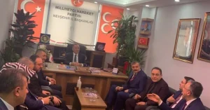 MHP İl Başkanı Adnan Doğu ve yönetim kurulu üyelerini MHP İl Başkanlığında ziyaret eden Bakan Akdağ, AK Parti Milletvekilleri Yücel Menekşe ve Mustafa Açıkgöz, Nevşehir Belediye başkanı Mehmet Savran, AK Parti il Başkanı Ali Kemikkıran ile beraberindeki heyet eşlik etti.