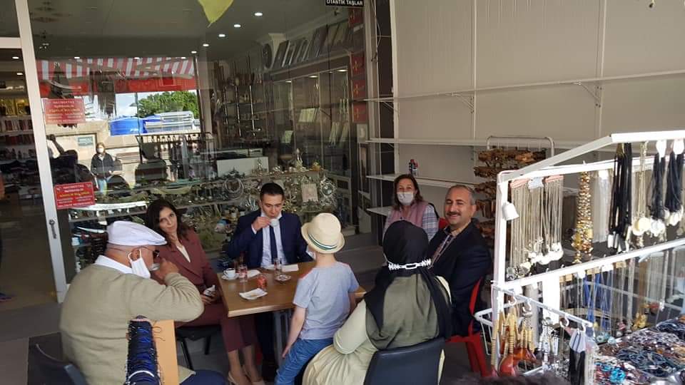Daha Adalet Bakanı Abdülhamit Gül, Dergâh ziyareti sonrasında, Sevgi Yolu üzerinde el sanatları ürünleri satan esnafları ziyaret eden Bakan Gül, bir süre esnaflarla da sohbet etti.