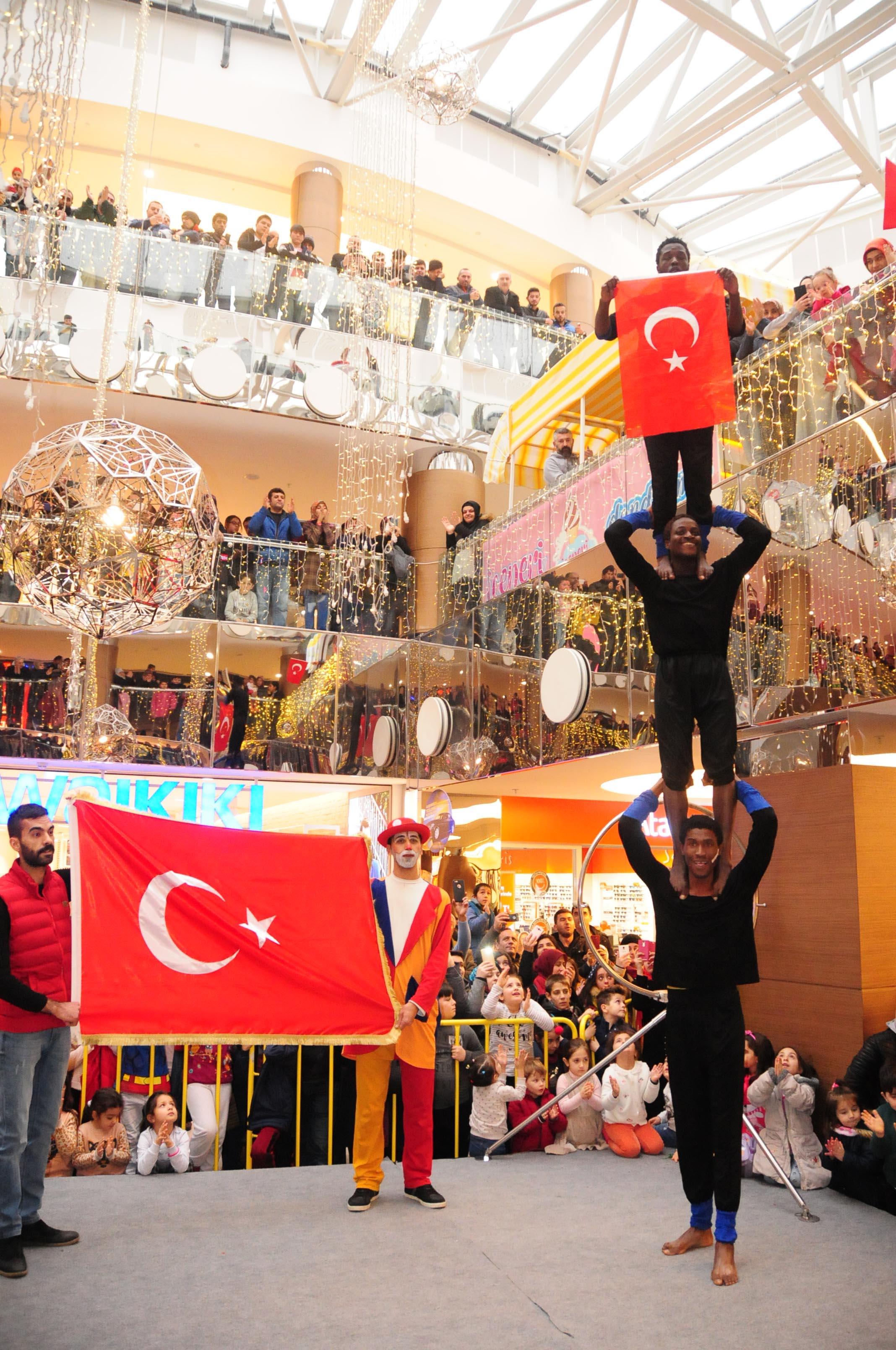 Nevşehir ’de bir alışveriş merkezi tarafından düzenlenen sirk gösterisinde Müslüman olan Afrikalı ve faslı bir grup standın ortasında bir, birlerinin omuzuna çıkarak kule yaptılar. En üstteki faslı üzerindeki Türk bayrağını çıkartıp seyircilere gösterdi. Afrin’e yönelik düzenlenen Zeytin Dalı Harekatı’na katılan Mehmetçiklere destek amaçlı yapılan bu gösteriyi AVM’deki vatandaşlar alkışlarla destek verdi. Onuncu yıl marşı söylendi. Organizasyon sorumlusu Can Ağır ise, yöresel ürünlerin ve bu tür etkinliklerin 04 Şubat tarihine kadar devam edeceğini söyledi.