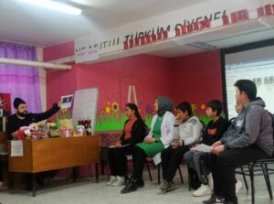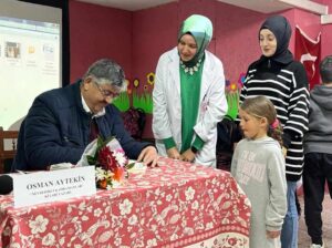 Derslerle ve mesajlarla dolu doğaçlama gelişen oyunun sonunda da “Nevşehirli Kahramanlar” kitabı yazarı Osman Aytekin, Vatan Bakkalı ziyaret ederek öğrencilere güzel bir sürpriz yaptı. Hem öğrenciler için tek tek kitabını imzaladı hem de harika bir “yazar söyleşisi”nde bulundu. Öğrencilerin yazarımıza soruları, Nevşehirli Kahramanlar Harp Hikayeleri isimli kitaptan kelime sorma yarışmaları ile program zenginleşti ve renklendi.