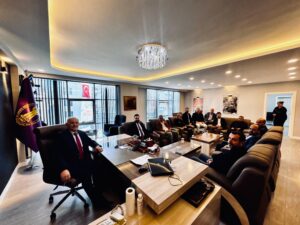 NEVŞEHİR(TRENDHABER)- AK Parti Nevşehir İl Başkanı Avukat Muhammed Feyzi Aygün beraberindeki heyetle birlikte,  Nevşehir Esnaf ve Sanatkarlar Odaları Birliği (NEVESOB) Başkanı Mehmet Pınarbaşı’nı makamında ziyaret etti.