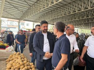 Pazar esnafımıza hayırlı işler ve bereketli kazançlar dileyerek, alışveriş yapan vatandaşlarımızla sohbet ederek hayırlı ve bol kazançlar temennisinde bulunduk.” dedi.