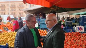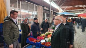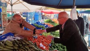 Pazarda alışveriş yapan vatandaşların taleplerini dinleyen Başkan Adayı Fahri Yıldız’a vatandaşlar, desteklerinin devam edeceğini söylerken pazar ziyaretinde Başkan Adayı Fahri Yıldız’a AK Parti Ürgüp İlçe Başkanı Doğan Derin ve partililer eşlik etti.
