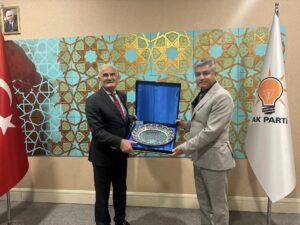 NEVŞEHİR(TRENDHABER)- Yazıhüyük Belediye Başkanı Cengiz Çavdar, Ürgüp Belediye Başkanı Mehmet Aktürk, Gülşehir Belediye Başkanı Fatih Çiftçi, Acıgöl Belediye Başkanı Ercan Ertaş, Nar Belediye Başkanı Süleyman Özyılmaz, AK Parti Yerel Yönetimler Başkanlığı görevine getirilen Yusuf Ziya Yılmaz’a hayırlı olsun ziyaretinde bulundular.