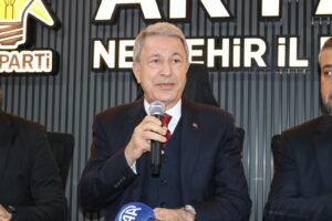Büyük ve güçlü Türkiye için Cumhurbaşkanı Recep Tayyip Erdoğan’ın liderliğinde çalışmalarını sürdürdüklerini söyleyen Akar, terörist başı Abdullah Öcalan’ın PKK’ya silah bırakma çağrısı ile ilgili şunları söyledi: “40 yıldan beri başımıza musallat olan bu terör belasından kurtulmak için bir tarafta sahada, diğer taraftan da masada çalışmalarımız sürüyor. Burada hiçbir şekilde taviz söz konusu değil, herhangi bir şekilde af söz konusu değil, herhangi bir şekilde ortada onlara verilecek bir eksik yanlış, onların dediğini yapacak affetme gibi şeyler söz konusu değil. Herkes neyse cezasını çekecek o ayrı bir konu. Fakat diğer taraftan da bu terörün bir an önce bitmesi için girişimler yapılıyor, temaslarda bulunuluyor. Sahada hiçbir şey değişmedi. Sahada ölürsem şehit, kalırsam gazi anlayışıyla Mehmetçik gece gündüz demeden teröristlere karşı mücadelesini sürdürüyor. Onların barınaklarını, sığınaklarını, korunaklarını başlarına yıktı. Oraya gömmeye devam ediyor.”