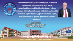 Özaltın mesajında şi ifadelere yer verdi; “ Sahip olduğumuz bu güzel ülkenin güçlü ve aydınlık bir geleceğe kavuşması için birey olarak sorumluluklarımızın bilinci içerisinde yeni yılınızı kutluyor; 2024 yılının ülkemize, milletimize, Altınyıldız Eğitim Ailesine, eğitim camiasına sağlık,huzur, mutluluk ve iyilikler getirmesini temenni ediyorum.”