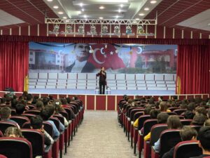 Öğrencilerle samimi bir söyleşi gerçekleştiren Nazan Tarım, yazarlık yolculuğundan, kitaplarını kaleme alırken yaşadığı deneyimlerden ve çocuklara hitap eden hikâyelerini oluşturma sürecinden bahsetti. Öğrenciler, yazarın anlattıklarını ilgiyle dinledi ve merak ettikleri soruları sorma fırsatı buldu.
