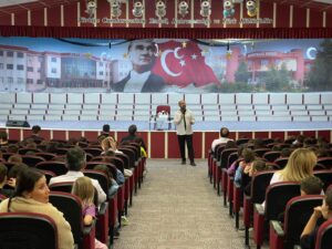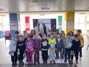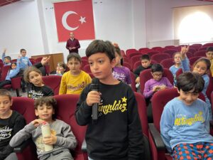 Öğrencilerimizle keyifli bir söyleşi gerçekleştiren Murat Moroğlu, yazarlık serüveninden, kitaplarının ilham kaynaklarından ve çocuklara hitap eden eserlerinin nasıl ortaya çıktığından bahsetti. Samimi ve eğlenceli anlatımıyla öğrencilerin ilgisini çeken yazar, okumanın ve yazmanın hayatımızdaki önemine de dikkat çekti.
