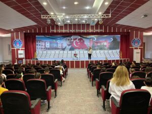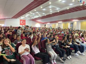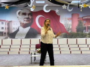 Öğrencilerimizle keyifli bir söyleşi gerçekleştiren Ece Erdoğuş Levi, yazarlık serüveninden, kitaplarının ilham kaynaklarından ve çocuklara hitap eden eserlerinin nasıl ortaya çıktığından bahsetti. Samimi anlatımıyla öğrencilerin ilgisini çeken yazar, okumanın ve yazmanın önemine değindi.