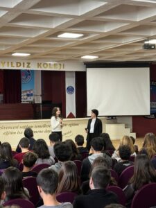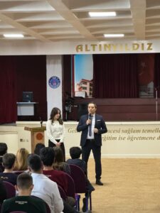 - ve 8.sınıf öğrencilerinin katıldığı söyleşide İpek Barış , tüm soruları büyük bir samimiyetle cevaplamış ve akranlarına örnek teşkil etmiştir. Akranlarından sınav hazırlık sürecini dinleyen öğrencilerimiz; bu süreci nasıl yöneteceklerini, ders çalışma yöntemlerini, motivasyon unsurlarını ve nelerden uzak durmaları gerektiğini öğrenerek çalışma isteklerini pekiştirdiler.