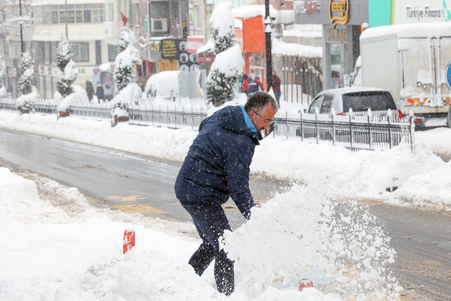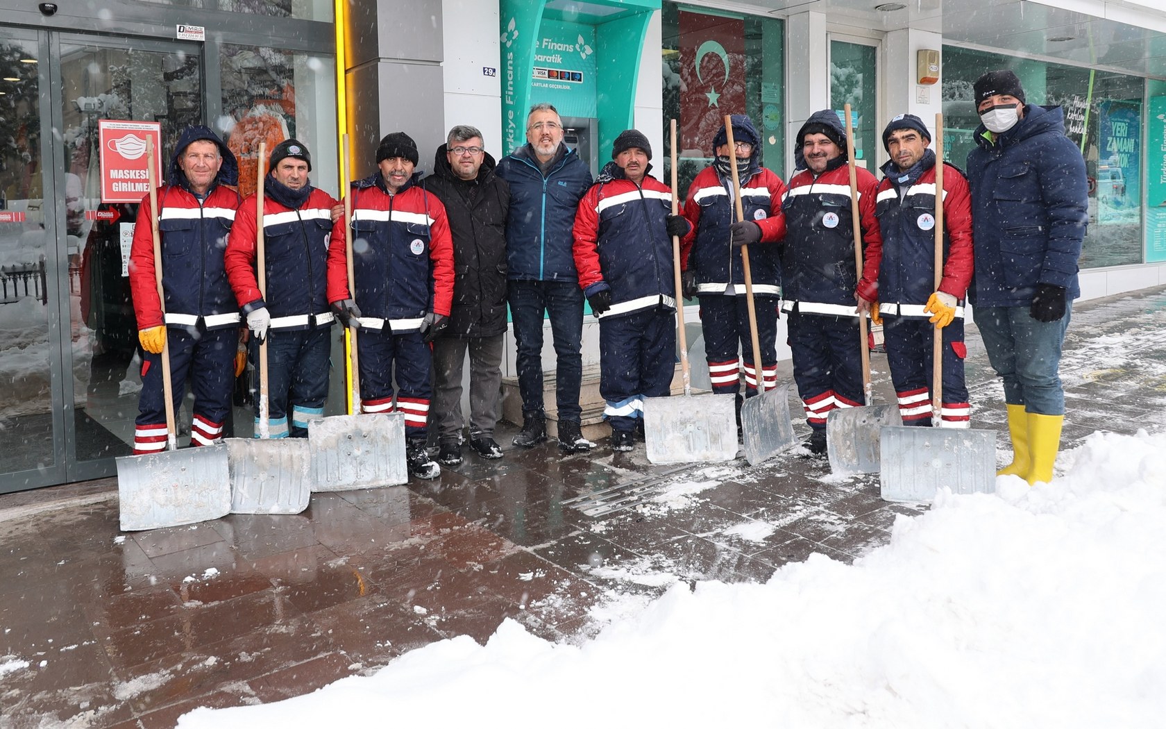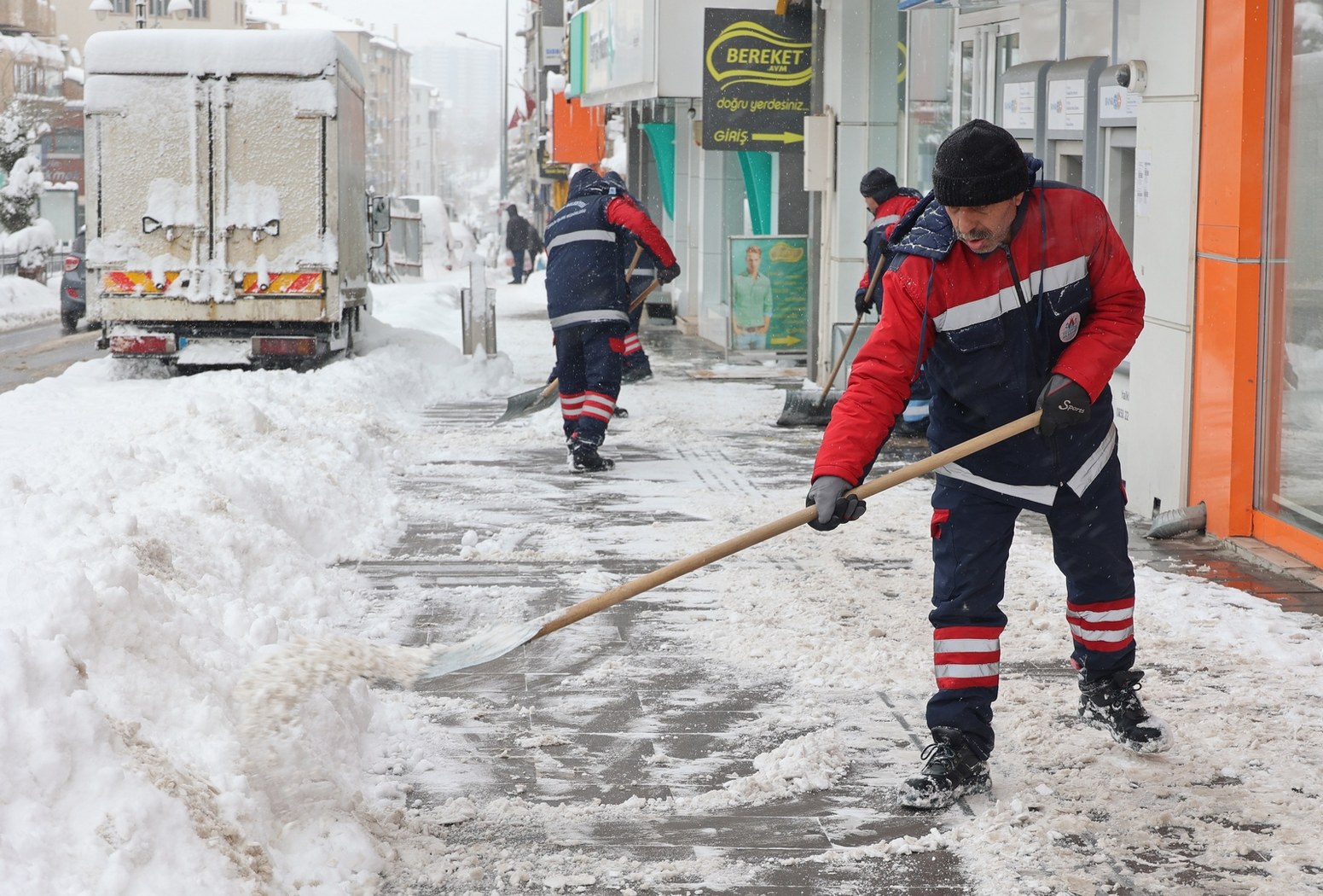 Kar kalınlığının 30 cm’yi aştığı şehir merkezinde ara sokaklar ve mahallelerde de görev yapan belediye ekipleri yaya kaldırımlarının temizlenmesi için de yoğun mesai harcıyor.