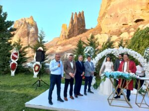 Nevşehir’in Avanos ilçesine bağlı Çavuşin köyü,, Ankara Milli Eğitim Müdürü Harun Fatsa ile Nuri Ekmekçioğlu’nun değerli evlatları Esra ve Ömer Faruk’un bir ömür boyu sürecek mutluluklarının nikah töreni ile taçlanmasına şahitlik etti.
